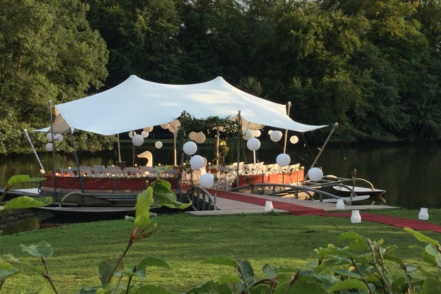 Een voorbeeld van trouwen in de natuur - een creatie van Ongeremd Stijlvol op het vlot in de vijver van Sonsbeek achter Brasserie de Boerderij.